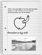 Examples: The surface of a sheet of paper or a TV screen. Not the items themselves, only the surfaces.
